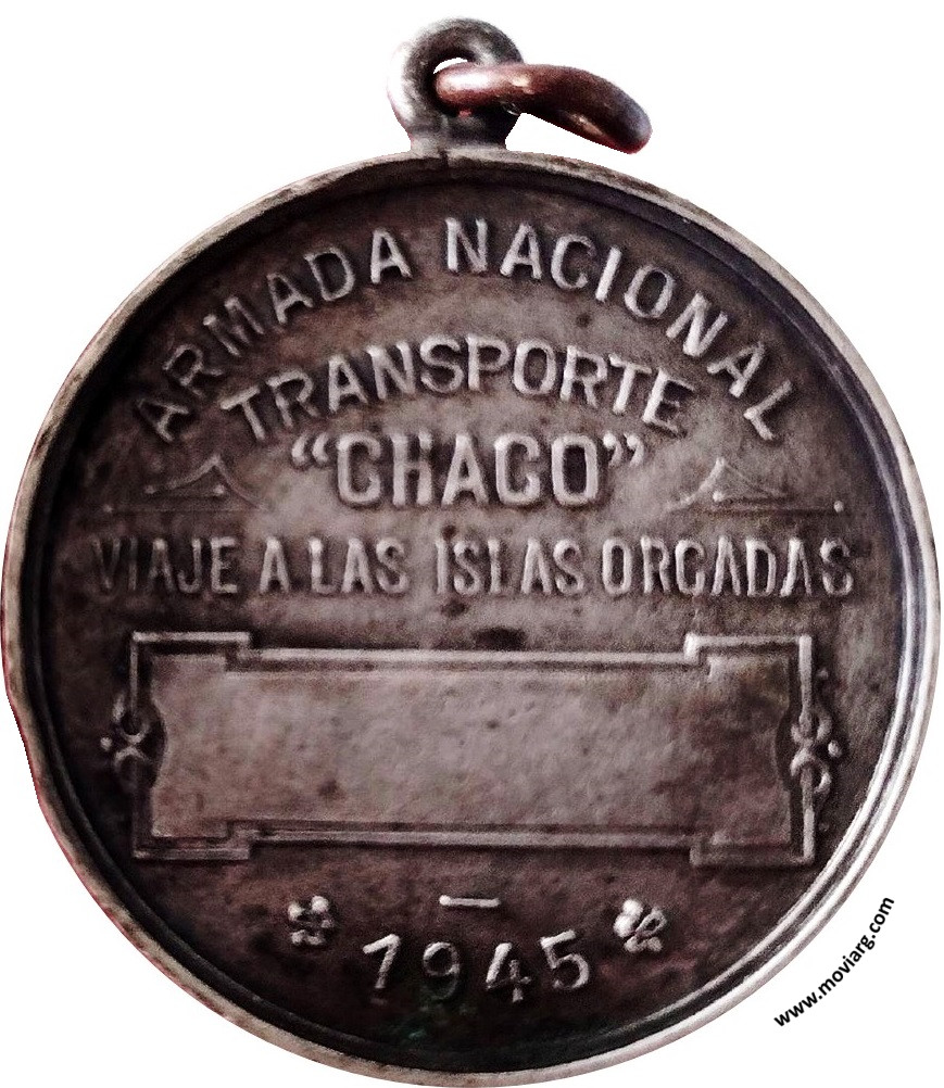 Anverso: REPUBLICA ARGENTINA. Firma: CONSTANTE ROSSI Reverso: ARMADA NACIONAL / TRANSPORTE / " CHACO " / VIAJE A LAS ISLAS ORCADAS / 1945 Referencia: | |