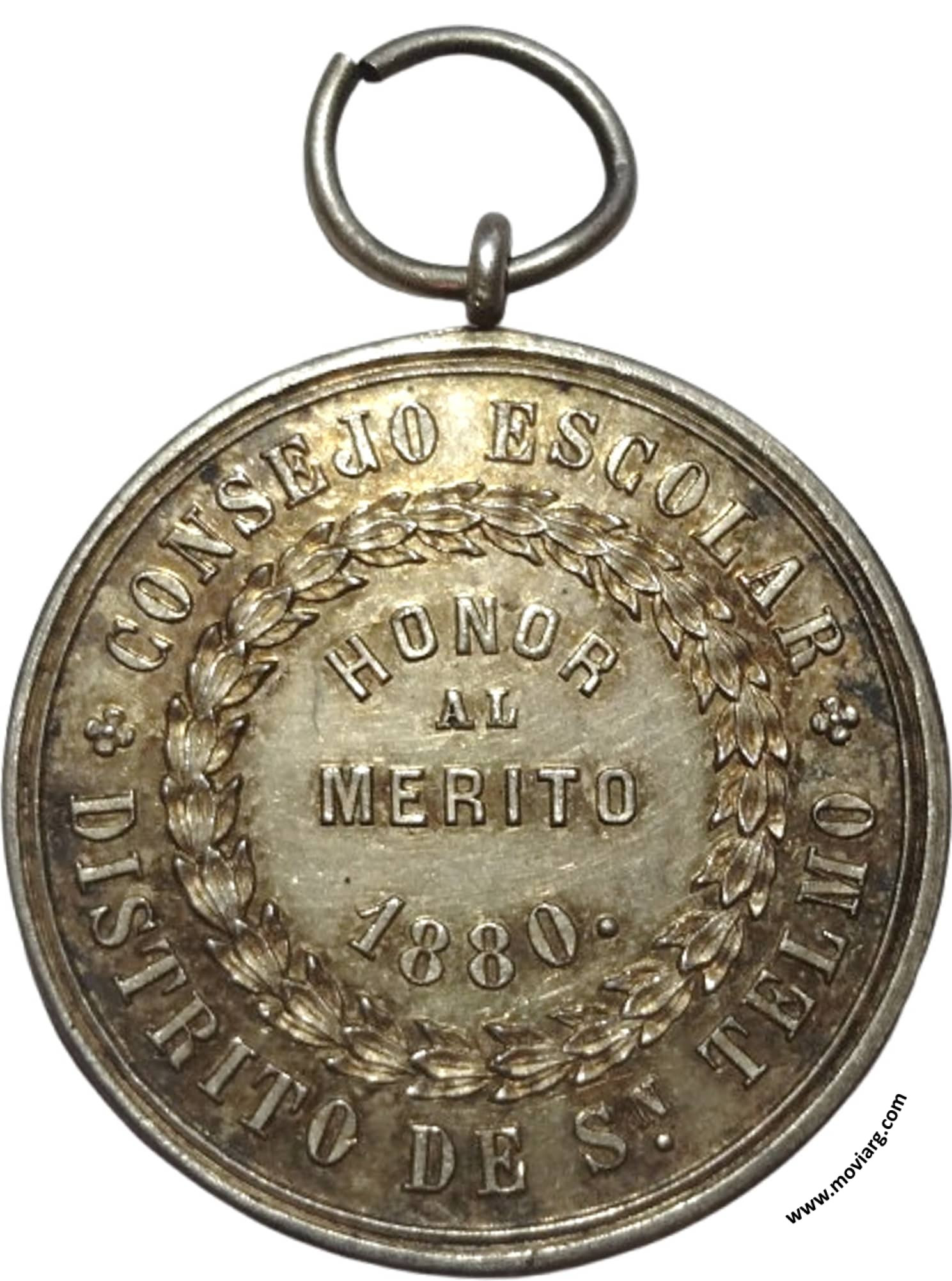 Anverso: Firma: R. GRANDE. Campo: BERNARDINO / RIVADAVIA Reverso: CONSEJO ESCOLAR / DISTRITO DE SN. TELMO / HONOR / AL / MERITO / 1880. Referencia: | |