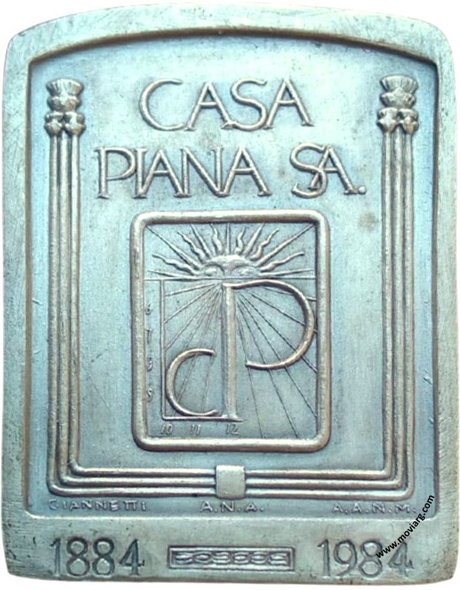 Anverso: CENTENARIO. Campo: GA / NNE / TTI Reverso: CASA / PIANA SA. / 1884 / 1984. Firma: GIANNETTI / A.N.A. / A.A.N.M. / CASA PIANA - BUENOS AIRES Referencia: | |