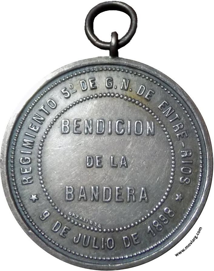 Colección Nicolás Pittavino Anverso: A LA MILICIA CIUDADANA / LAS DAMAS DE CONCORDIA / RECUERDO / DE / LINIE ROBINSONReverso: REGIMIENTO 5° DE G.N. DE ENTRE-RIOS / 9 DE JULIO DE 1898 / BENDICION / DE LA / BANDERA. Firma: ORZALI B. Y C. Referencia: | |