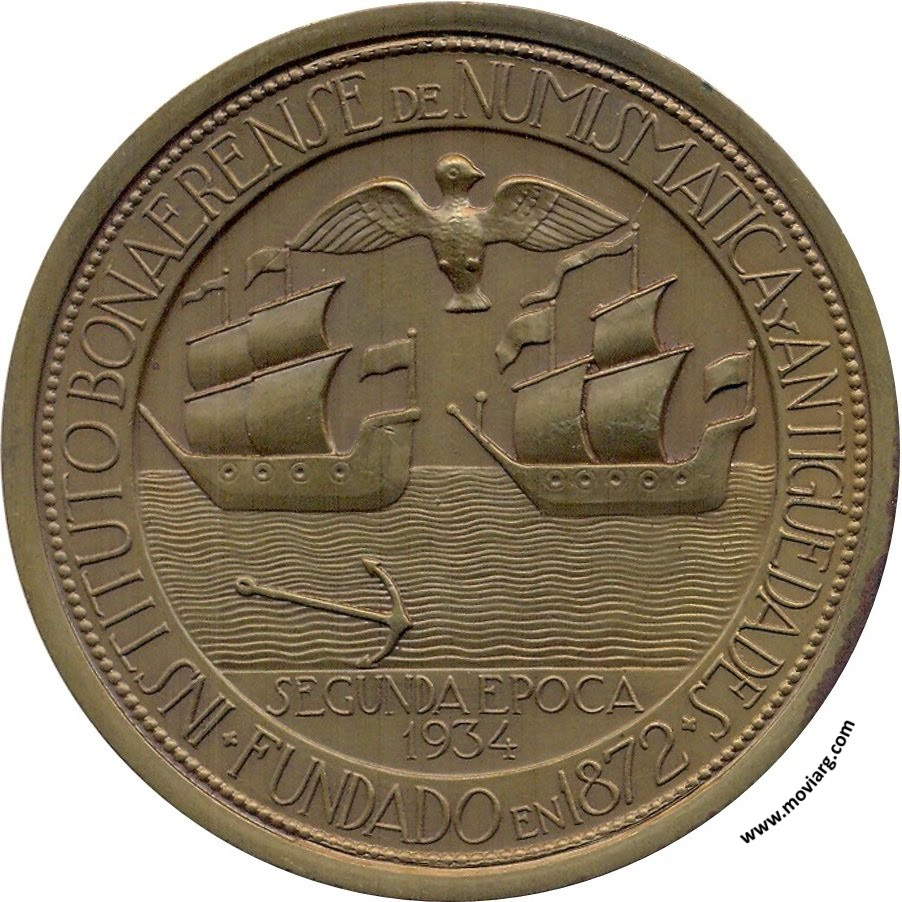 Anverso: INSTITUTO BONAERENSE DE NUMISMATICA Y ANTIGÜEDADES / FUNDADO EN 1872 / SEGUNDA EPOCA / 1934 Reverso: IN AURUM VERITATIS SIGNUM PATRIÆ / " TERCERA / EXPOSICION ARGENTINA / DE NUMISMATICA / EN EL X° ANIVERSARIO / DE LA / FUNDACION DEL INSTITUTO " / 1934 - 1944 / BUENOS AIRES / 10 DE JUNIO DE 1945. Firma: GOTTUZZO Y PIANA Referencia: | |