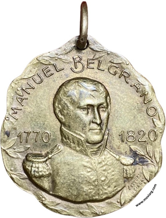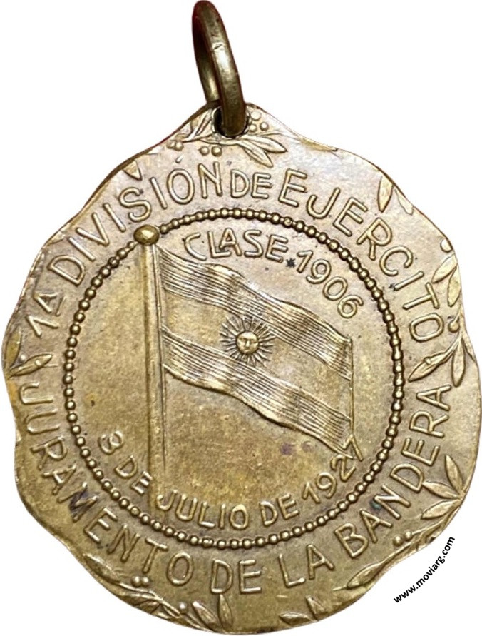 Anverso: MANUEL BELGRANO / 1770 / 1820. Firma: GOTTUZZO / Y PIANA Reverso: 1A. DIVISIÓN DE EJERCITO / JURAMENTO DE LA BANDERA / CLASE 1906 / 3 DE JULIO DE 1927 Referencia: | |