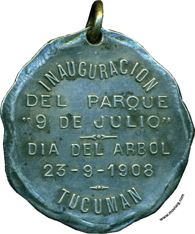Anverso: Firma: GOTTUZZO Y CA. Reverso: INAUGURACION / DEL PARQUE / " 9 DE JULIO " / DIA DEL ARBOL / 23 - 9 - 1908 / TUCUMAN Referencia: | |