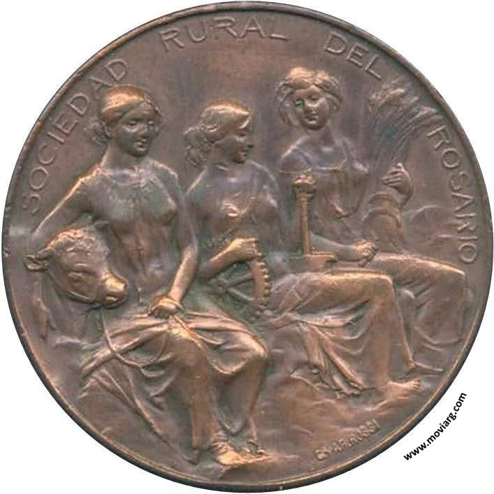 Anverso: SOCIEDAD RURAL DEL ROSARIO. Firma: C. Y AF. ROSSI Reverso: EXPOSICION FERIA GANADERA, AGRICOLA É INDUSTRIAL / ROSARIO DE SANTA FÉ / PREMIO / 1914 Referencia: | |