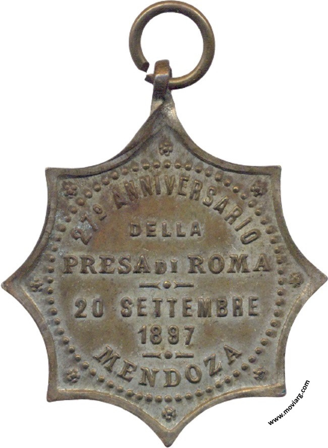 Anverso: Reverso: 27° ANNIVERSARIO / DELLA / PRESA DI ROMA / 20 SETTEMBRE / 1897 / MENDOZA Referencia: | |
