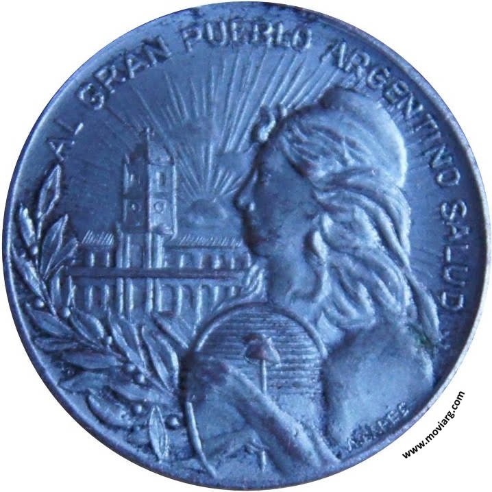 Anverso: AL GRAN PUEBLO ARGENTINO SALUD. Firma: A. BARÉS Reverso: PRIMER CENTENARIO / DE LA / REVOLUCION / LIBERTADORA / 1810 - 1910 / REPUBLICA ARGENTINA Referencia: | |