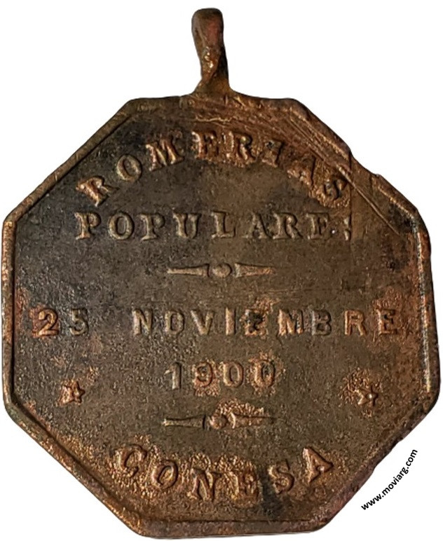Anverso: Firma: A.B. Reverso: ROMERIAS / POPULARES / 25 NOVIEMBRE / 1900 / CONESA Referencia: | |