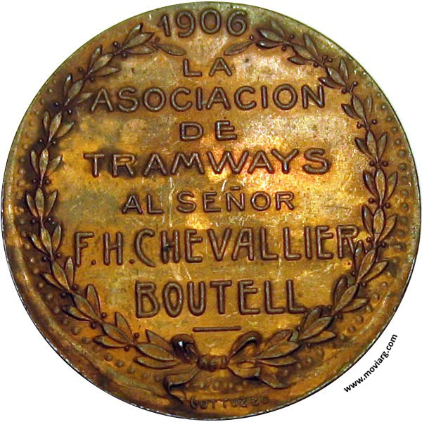 Anverso: PASE LIBRE / ANGLO / ARGENTINO / BUENOS AIRES / Y BELGRANO / LA CAPITAL / GRAN NACIONAL / ELECTRICOS / DE BUENOS AIRES / LACROZE / TRAMWAY / A QUILMES / LA NUEVA / METROPOLO. Reverso: 1906 / LA / ASOCIACION / DE / TRAMWAYS / AL SEÑOR / F. H. CHEVALLIER / BOUTELL. Firma: GOTTUZZO Referencia: | |