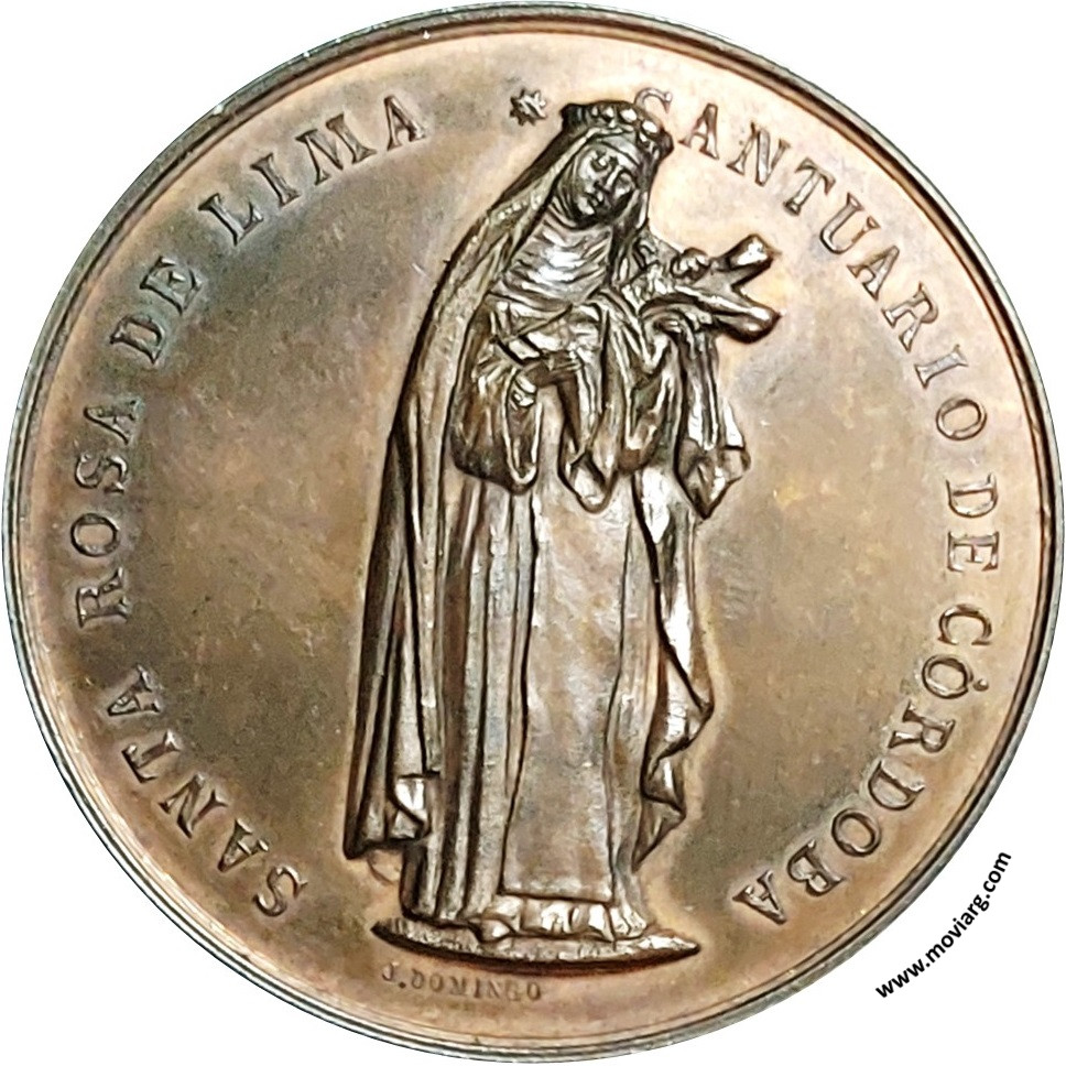 Anverso: NUESTRA SEÑORA DEL MILAGRO CÓRDOBA Reverso: SANTA ROSA DE LIMA / SANTUARIO DE CÓRDOBA. Firma: J. DOMINGO Referencia: | |