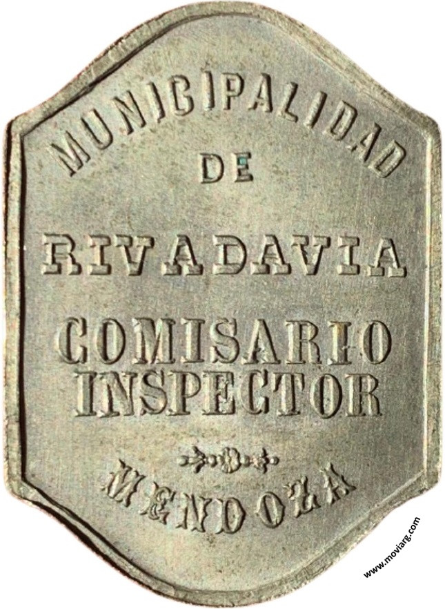 Anverso: Firma: C. Y AF. ROSSI Reverso: MUNICIPALIDAD / DE / RIVADAVIA / COMISARIO / INSPECTOR / MENDOZA Referencia: | |