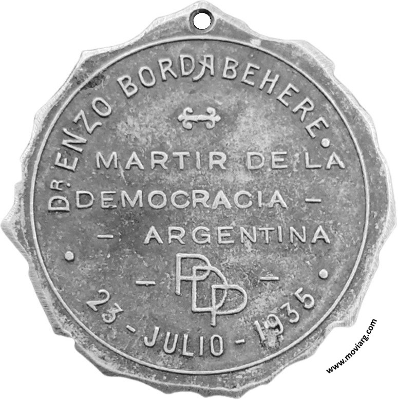 Anverso: Firma: V. VITOLA? VITOIA? / VANZO? Reverso: DR. ENZO BORDABEHERE / MARTIR DE LA / DEMOCRACIA / ARGENTINA / PDP / 23 - JULIO - 1935 Referencia: | |