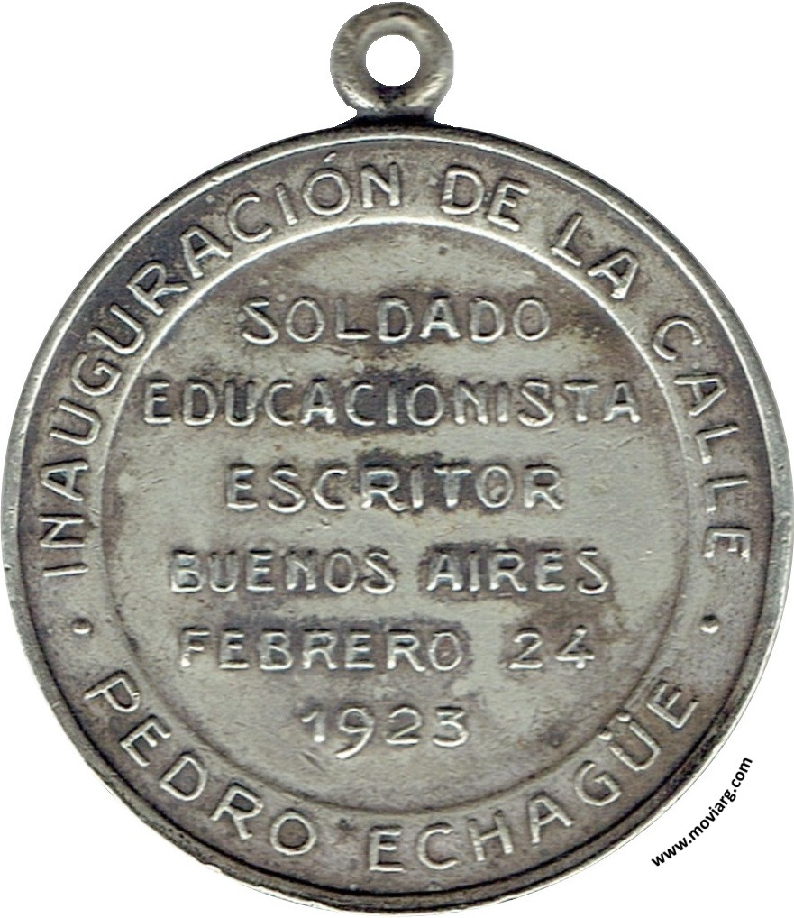 Anverso: Firma: BRODSKY Reverso: INAUGURACIÓN DE LA CALLE / PEDRO ECHAGÜE / SOLDADO / EDUCACIONISTA / ESCRITOR / BUENOS AIRES / FEBRERO 24 / 1923 Referencia: | |