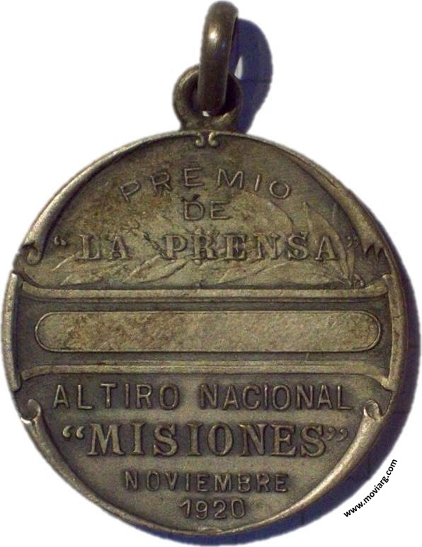 Anverso: VERITAS / JUSTITIA / HUMANITAS. Firma: CONSTANTE ROSSI Reverso: PREMIO / DE / "LA PRENSA" / AL TIRO NACIONAL / " MISIONES " / NOVIEMBRE / 1920 Referencia: | |