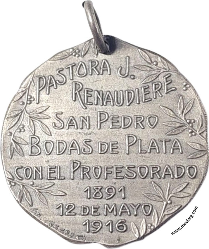 Anverso: Campo: LABOR Reverso: PASTORA J. / RENAUDIERE / SAN PEDRO / BODAS DE PLATA / CON EL PROFESORADO / 1891 / 12 DE MAYO / 1916. Firma: GOTTUZZO Y CA. Referencia: | |