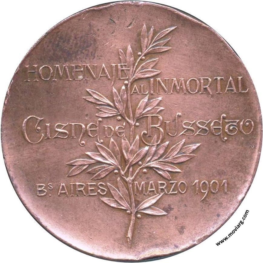 Anverso: JOSÉ / VERDI. Firma: A. BIDOGLIA / GRAB. Reverso: HOMENAJE / AL INMORTAL / CISNE DE / BUSSETO / BS. AIRES / MARZO 1901 Referencia: | |