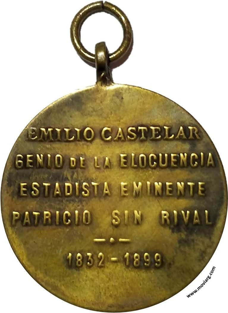 Anverso: Reverso: EMILIO CASTELAR / GENIO DE LA ELOCUENCIA / ESTADISTA EMINENTE / PATRICIO SIN RIVAL / 1832 - 1899 Referencia: | |