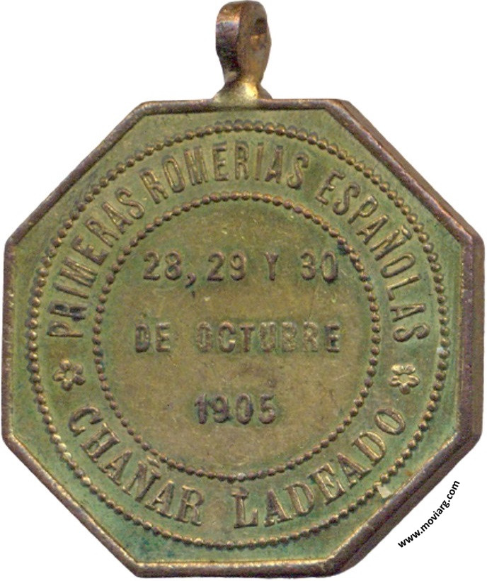 Anverso: Firma: BELLAGAMBA Y ROSSI Reverso: PRIMERAS ROMERIAS ESPAÑOLAS / CHAÑAR LADEADO / 28, 29 Y 30 / DE OCTUBRE / 1905 Referencia: | |