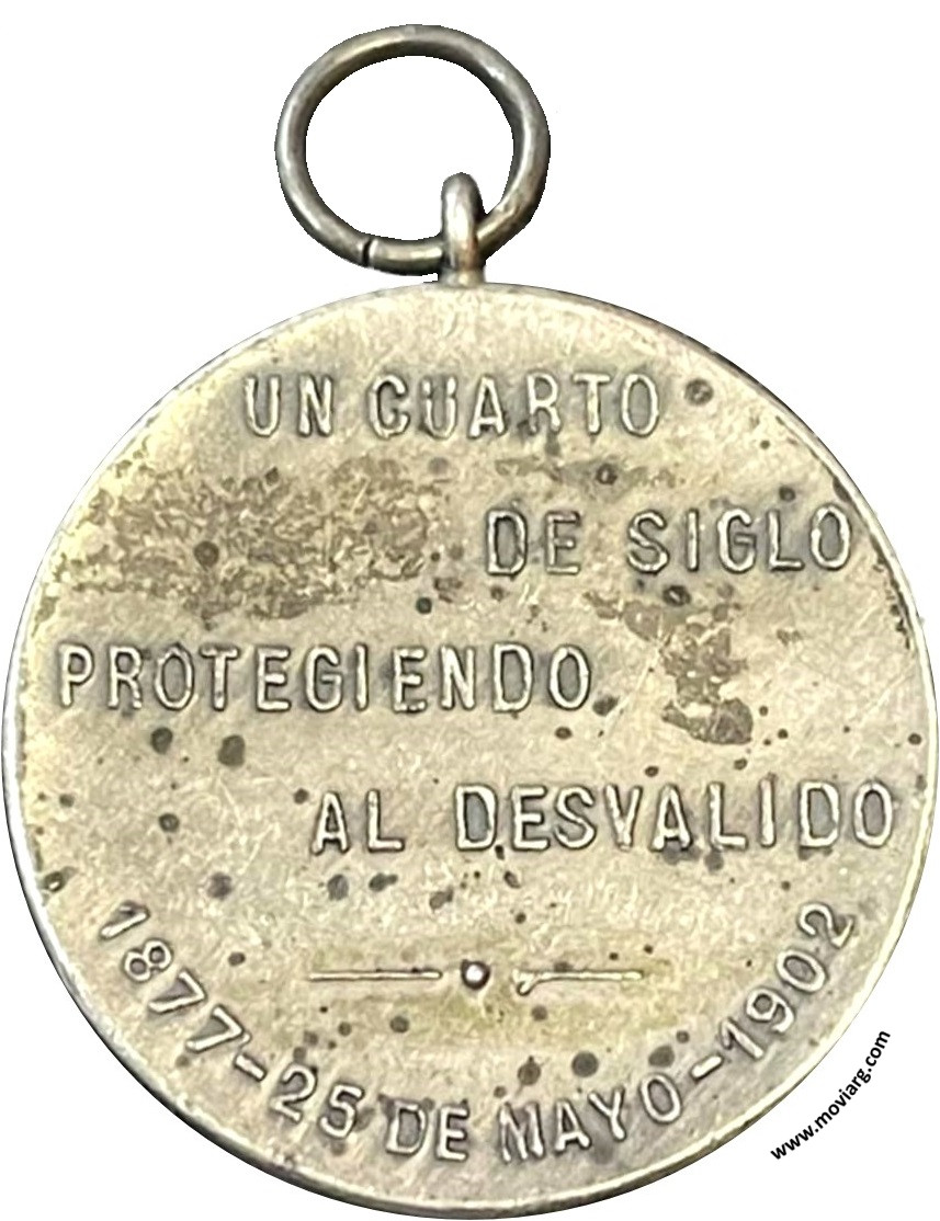 Anverso: SOCIEDAD DE BENEFICENCIA ( C. DEL URUGUAY ) Reverso: UN CUARTO / DE SIGLO / PROTEGIENDO / AL DESVALIDO / 1877 - 25 DE MAYO - 1902 Referencia: | |
