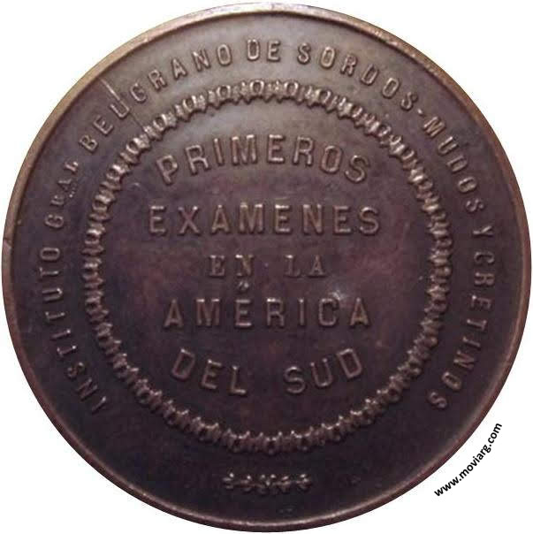 Anverso: REPÚBLICA ARGENTINA / MÉTODO ORAL / 1887. Firma: GRANDE Reverso: INSTITUTO GRAL. BELGRANO DE SORDO-MUDOS Y CRETINOS / PRIMEROS / EXAMENES / EN LA / AMÉRICA / DEL SUD Referencia: FERRARI-138 (RG) | |