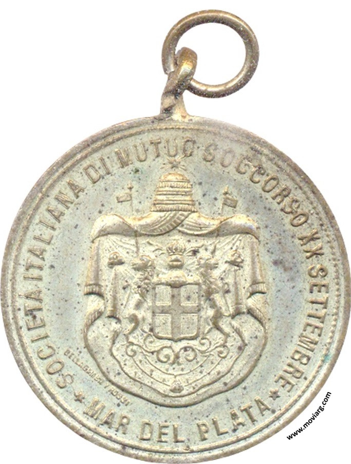 Anverso: SOCIETÁ ITALIANA DI MUTUO SOCCORSO XX SETTEMBRE / MAR DEL PLATA. Firma: BELLAGAMBA Y ROSSI Reverso: INAUGURAZIONE DELLO STENDARDO SOCIALE / PADRINO / JUAN B. GONI / MADRINA / SIGNA. RACCHELE MERLO / 28 OTTOBRE 1900 Referencia: | |