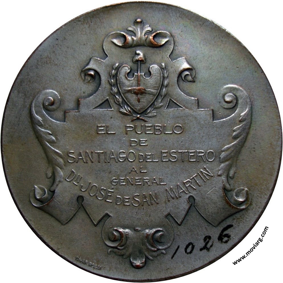 Anverso: INAUGURACIÓN / DEL MONUMENTO / 24 SETIEMBRE / 1911. Firma: C. Y AF. ROSSI Reverso: EL PUEBLO / DE / SANTIAGO DEL ESTERO / AL / GENERAL / DN. JOSÉ DE SAN MARTIN. Firma: C. Y AF. ROSSI Referencia: | |