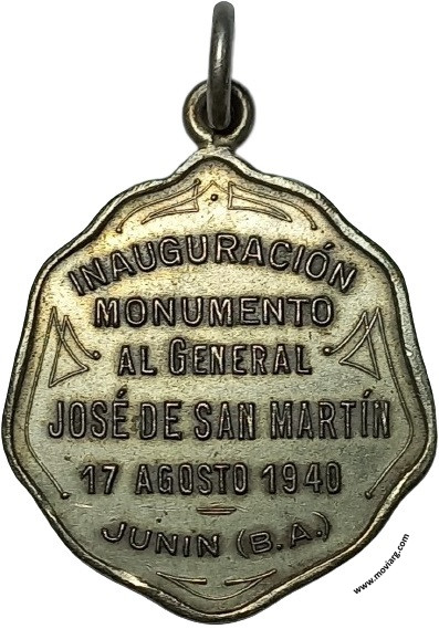 Anverso: Firma: CONSTANTE ROSSI Reverso: INAUGURACIÓN / MONUMENTO / AL GENERAL / JOSÉ DE SAN MARTÍN / 17 AGOSTO 1940 / JUNIN (B.A.) Referencia: | |