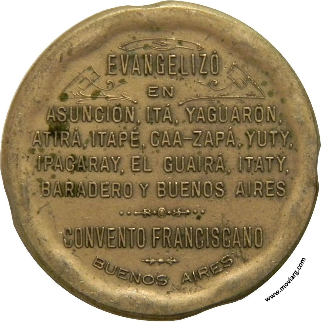 Anverso: FR. LUIS DE BOLAÑOS - 1629 · XI OCTUBRE · 1913. Firma: C. Y AF. ROSSI Reverso: EVANGELIZÓ / EN / ASUNCIÓN, ITÁ, YAGUARÓN, / ATIRÁ, ITAPÉ, CAA-ZAPÁ, YUTY, / IPACARAY, EL GUIRÁ, ITATY, / BARADERO Y BUENOS AIRES / CONVENTO FRANCISCANO / BUENOS AIRES Referencia: | |