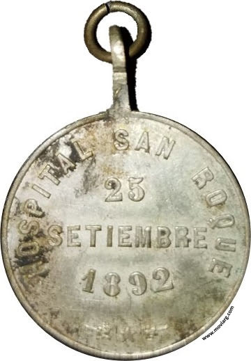 Anverso: HOSPITAL SAN ROQUE / 25 / SETIEMBRE / 1892 Reverso: INAUGURACION / DE LAS / SALAS / 10 Y 11 Referencia: | |