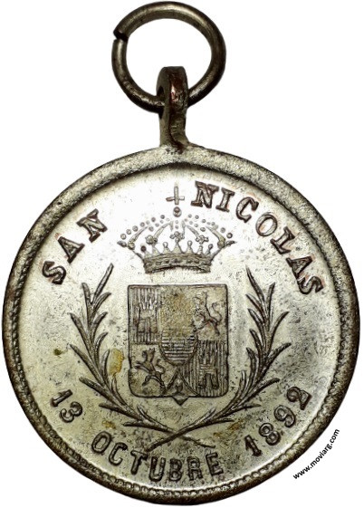 Anverso: ROMERIA ESPAÑOLA / 3ER. ANIVERSARIO Reverso: SAN NICOLAS / 13 OCTUBRE 1892 Referencia: | |