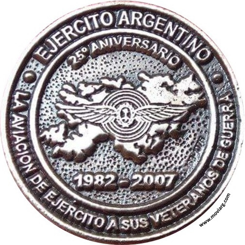 Colección M.A.A. Anverso: EJERCITO ARGENTINO / NACIO CON LA PATRIA EN MAYO 1810Reverso: EJERCITO ARGENTINO / LA AVIACION DE EJERCITO A SUS VETERANOS DE GUERRA / 25° ANIVERSARIO / 1982 - 2007 Referencia: | |