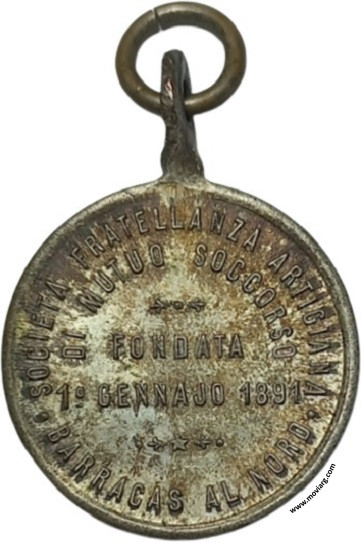 Anverso: INAUGURAZIONE BANDIERA / 18 DICEMBRE 1892 Reverso: SOCIETÁ FRATELLANZA ARTICIANA / BARRACAS AL NORD / DI MUTUO SOCCORSO / FONDATA / 1° GENNAJO 1891 Referencia: | |