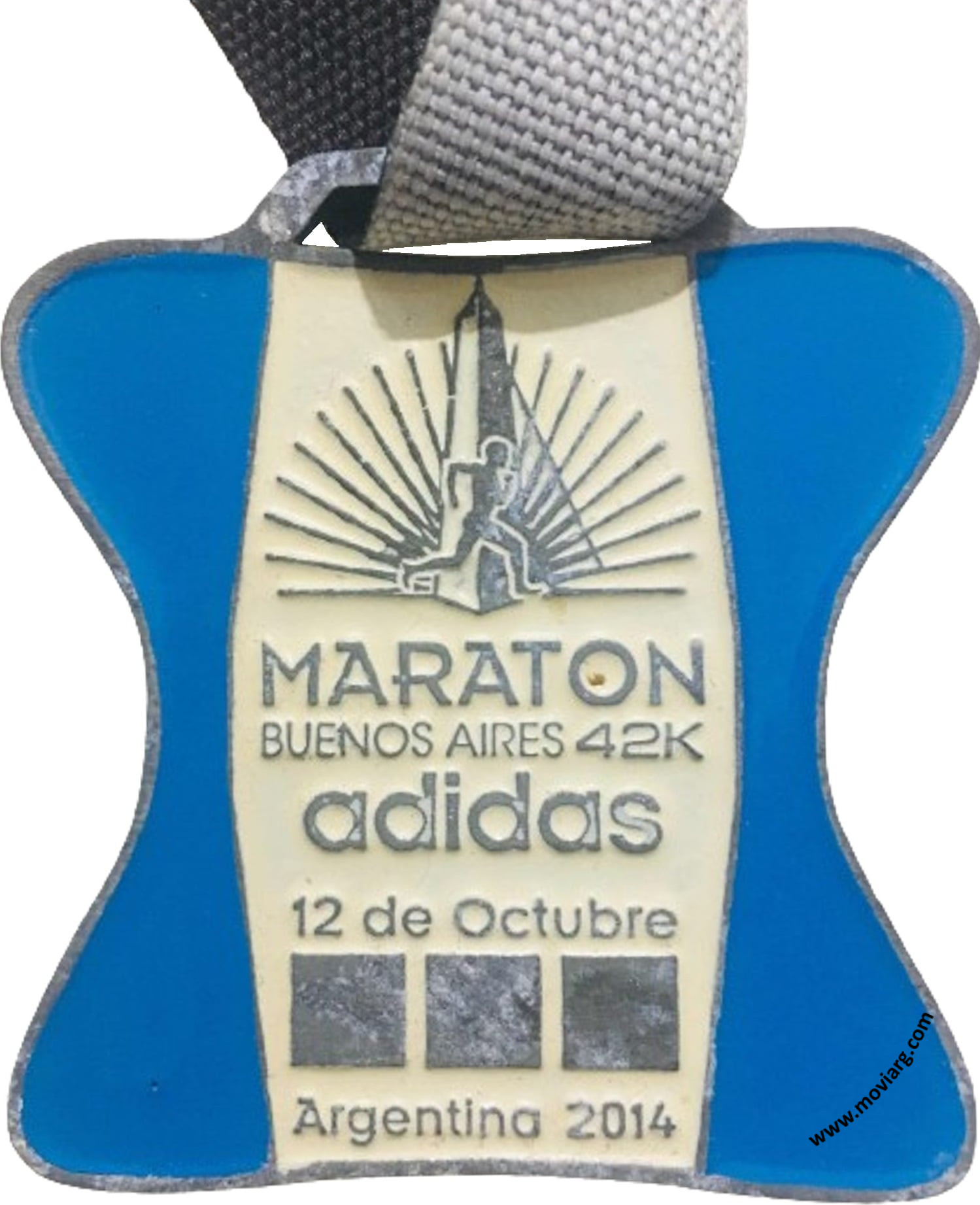 Anverso: MARATON / BUENOS AIRES 42K / ADIDAS / 12 DE OCTUBRE / ARGENTINA 2014 Reverso: ADIDAS / ORGANIZADOR / CARRERAS Y MARATONES / ÑANDU / 21K BUENOS AIRES 42K Referencia: | |