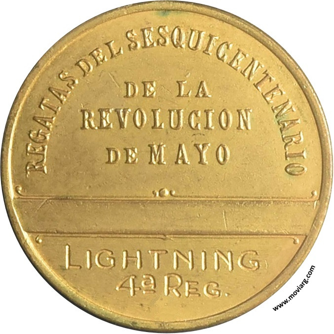 Anverso: FEDERACION ARGENTINA DE YACHTING DE CARRERA Reverso: REGATAS DEL SESQUICENTENARIO / DE LA / REVOLUCION / DE MAYO / [ LIGHTNING ] / [ 4A. REG. ] Referencia: | |