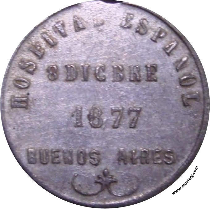 Anverso: GRATITUD A SUS PROTECTORES Reverso: HOSPITAL ESPAÑOL / 8 DICBRE. / 1877 / BUENOS AIRES Referencia: | |