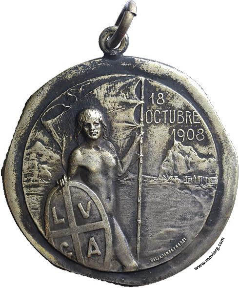 | Año: 1908 Ferrocarriles Metal: Plateado - Peso: 11.91gr - Módulo: 34mm - Rotación: 12hrs Grabador: José Bellagamba y Constante Rossi | |