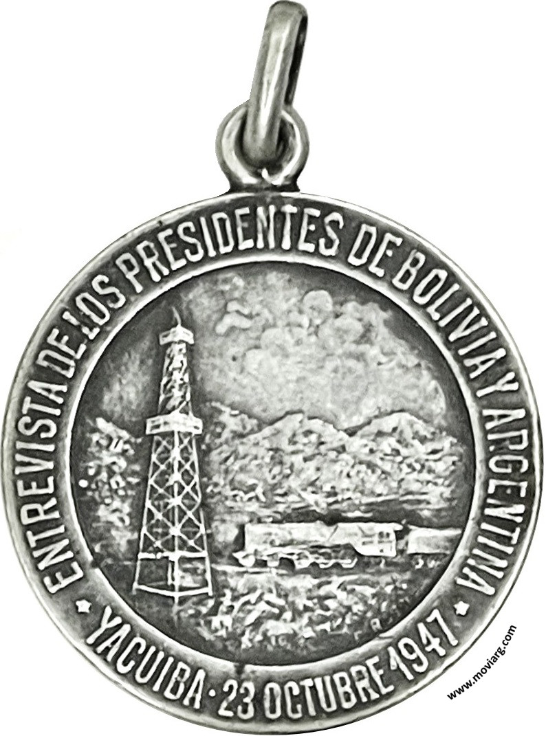 Anverso: PERÓN HERTZOG Reverso: ENTREVISTA DE LOS PRESIDENTE DE BOLIVIA Y ARGENTINA / YACUIBA · 23 OCTUBRE 1947 Referencia: | |