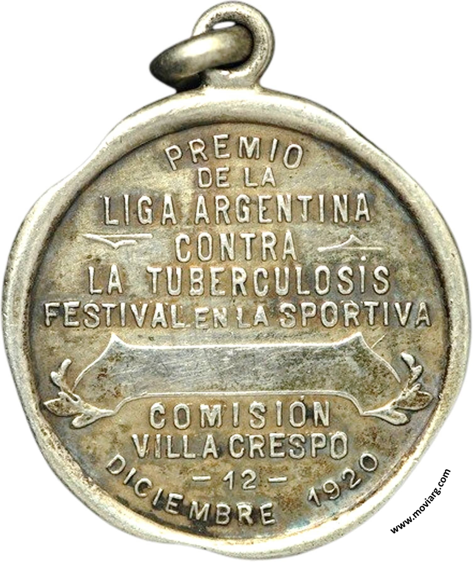 Anverso: Firma: C. Y AF. ROSSI Reverso: PREMIO / DE LA / LIGA ARGENTINA / CONTRA / LA TUBERCULOSIS / FESTIVAL EN LA SPORTIVA / COMISIÓN / VILLA CRESPO / 12 / DICIEMBRE 1920 Referencia: | |