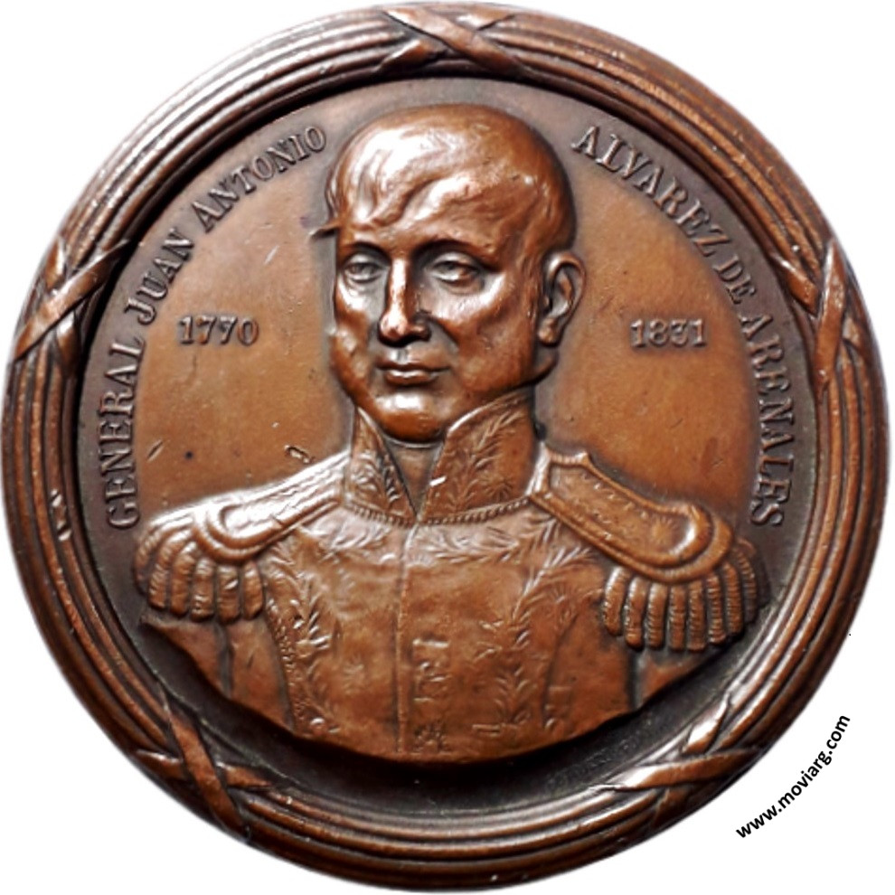 Anverso: GENERAL JUAN ANTONIO / ALVAREZ DE ARENALES / 1770 / 1831. Firma: GOTTUZZO Y PIANA Reverso: LUCHÓ / POR LA LIBERTAD / DE SUD AMERICA / SIENDO MODELO / DE PATRIOTISMO / LEALTAD / Y ORDEN / [ 67 ]. Firma: SOCIEDAD " LA MEDALLA " AÑO 1918 Referencia: | |