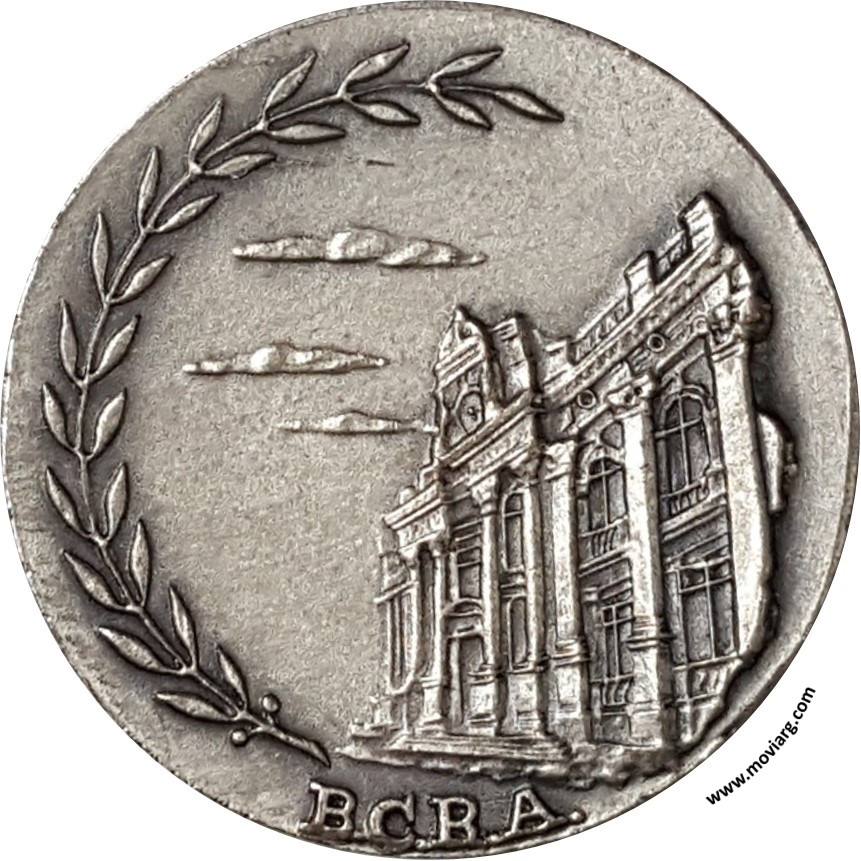 Anverso: B.C.R.A. Reverso: RECUERDO / DEL / BANCO CENTRAL / DE LA / REPUBLICA / ARGENTINA / A / [ ]. Exergo: [ ALPACA ] Referencia: | |