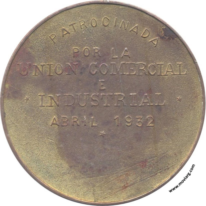 Anverso: EXPOSICION NACIONAL DE INDUSTRIA Y COMERCIO / MENDOZA. Firma: KLETSURKE (?) Reverso: PATROCINADA / POR LA / UNION COMERCIAL / E / INDUSTRIAL / ABRIL 1932 Referencia: | |