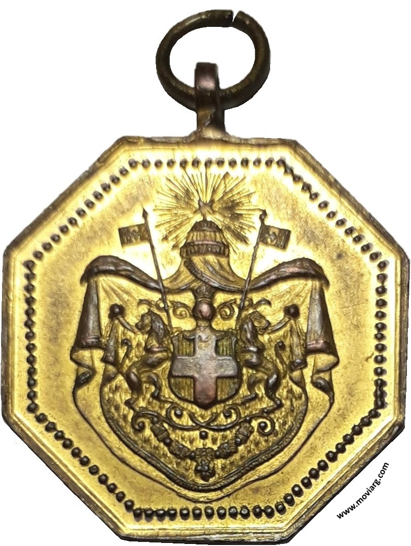 Colección MDS Anverso:Reverso: SOCIETÁ ITALIANA UNIONE E BENEVOLENZA / S.E. / IL MINISTRO / D' ITALIA / CONTE / PIETRO ANTONELLI / INAUGURA LA / BANDIERA SOCIALE / VILLA CASILDA / 10 NOVEMBRE 1895 Referencia: | |
