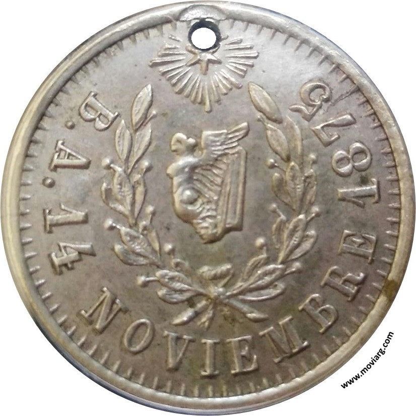 Anverso: BS. AS. 14 NOVIEMBRE 1875 Reverso: ESMERALDA / A SUS / FAVORIDORES (sic) / AGRADECIDA Referencia: | |