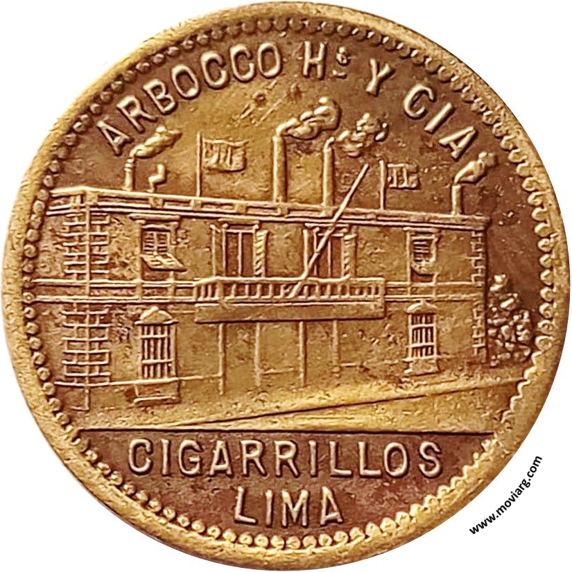 Anverso: ARBOCCO HS. Y CIA / CIGARRILLOS / LIMA Reverso: ESPAÑA Referencia: | |