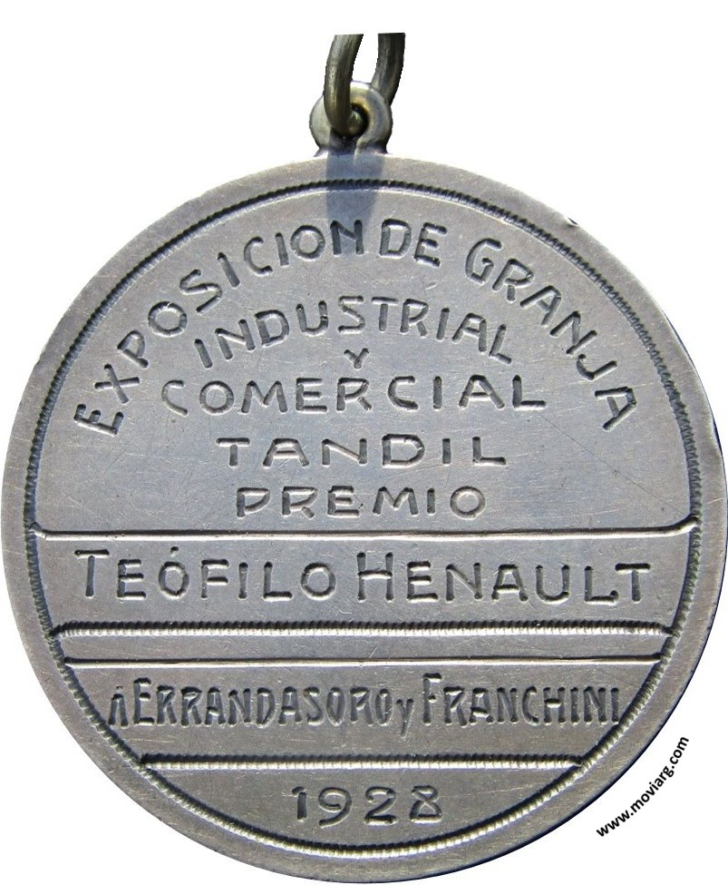 Anverso: Reverso: [ EXPOSICION DE GRANJA ] / [ INDUSTRIAL ] / [ Y ] / [ COMERCIAL ] / [ TANDIL ] / [ PREMIO ] / [ TEÓFILO HENAULT ] / [ A ERRANDASORO Y FRANCHINI ] / [ 1928 ] Referencia: | |