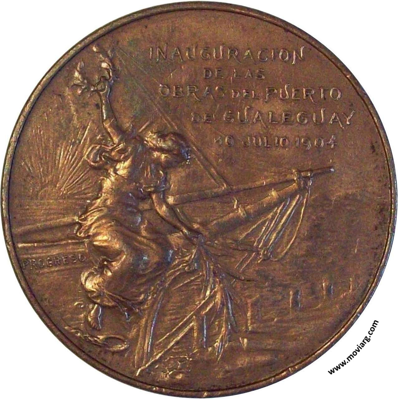 Anverso: INAUGURACION / DE LAS / OBRAS DEL PUERTO / DE GUALEGUAY / 10 JULIO 1904 / PROGRESO Reverso: REPUBLICA ARGENTINA / MINISTERIO DE OBRAS PUBLICAS / PRESIDENTE / TTE. GRAL. JULIO A. ROCA / MINISTRO / EMILIO CIVIT. Firma: J. GOTTUZZO Referencia: | |