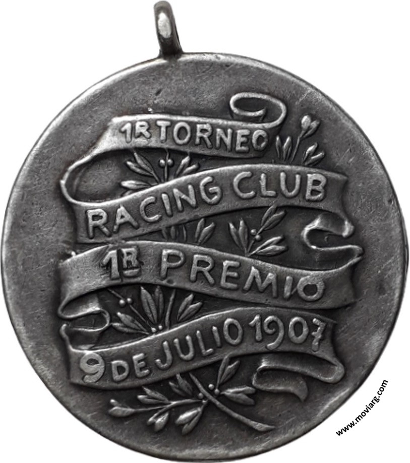 Colección MDS Anverso:Reverso: 1R. TORNEO / RACING CLUB / [ 1R. ] PREMIO / 9 DE JULIO 1907 Referencia: | |