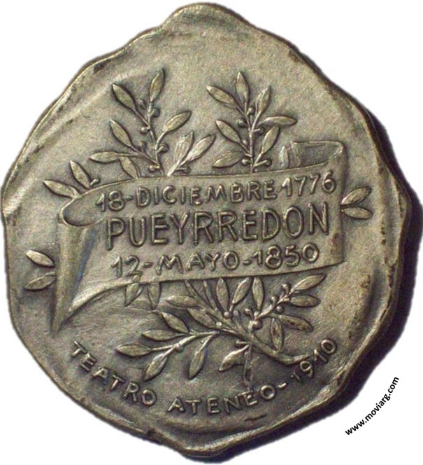 Anverso: Reverso: 18 - DICIEMBRE 1776 / PUEYRREDON / 12 - MAYO - 1850 / TEATRO ATENEO - 1910 Referencia: | |