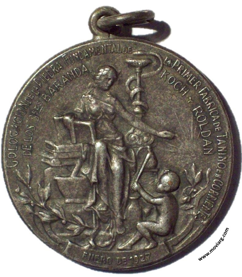 Anverso: COLOCACION DE LA PIEDRA FUNDAMENTAL DE / LA PRIMER FABRICA DE TANINO EN CORRIENTES / DE LOS SRES. BARANDA / KOCH Y ROLDAN / ENERO DE 1927 Reverso: SOCIEDAD INDUSTRIAL DE CORRIENTES / PADRINOS : / GOBERNADOR / DR. BENJAMÍN S. GONZÁLEZ / SENADOR NACIONAL / DR. JUAN RAMÓN VIDAL / SEÑORAS / SOFIA ALEMÁN DE GONZÁLEZ / Y / ELOISA TORRENT DE VIDAL. Firma: GOTTUZZO Y PIANA Referencia: | |