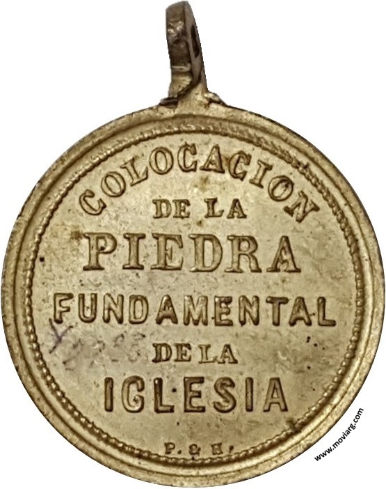 Anverso: OLAVARRIA / ABRIL 27 DE 1890 Reverso: COLOCACION / DE LA / PIEDRA / FUNDAMENTAL / DE LA / IGLESIA. Firma: P. & H. Referencia: | |