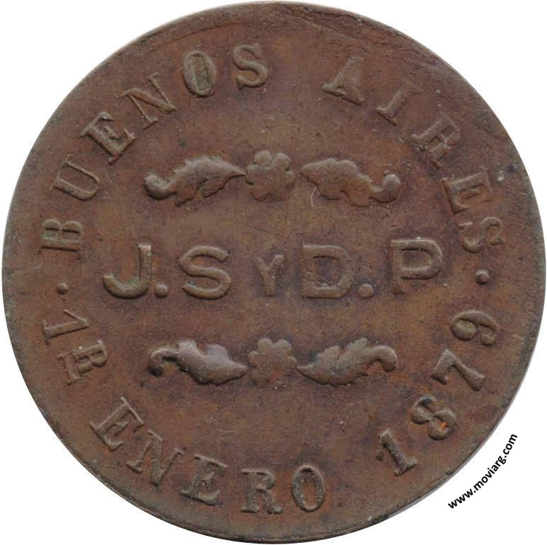 Anverso: SKATING-RINK / ESMERALDA 149 / 2$ Reverso: BUENOS AIRES / 1R ENERO 1879 / J.S Y D.P Referencia: BURZIO-4312 ROSA-1534 | |